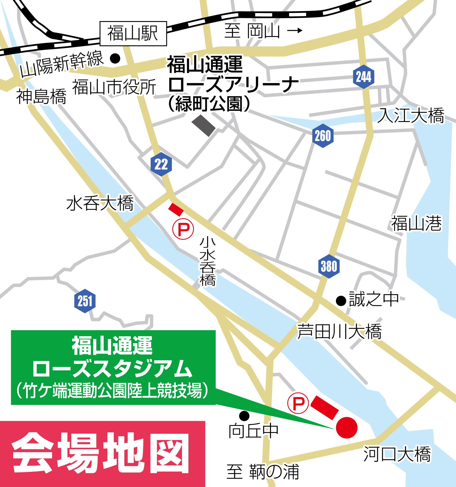 - 臨時バス運行 JR福山駅前(南口)~竹ケ端運動公園バス停まで
